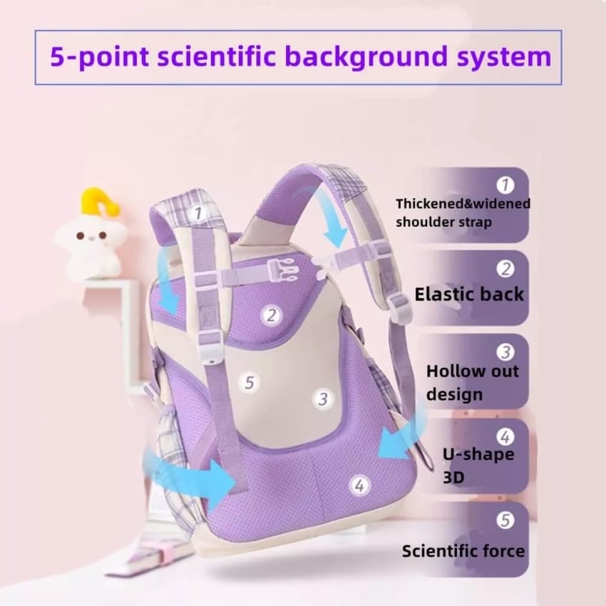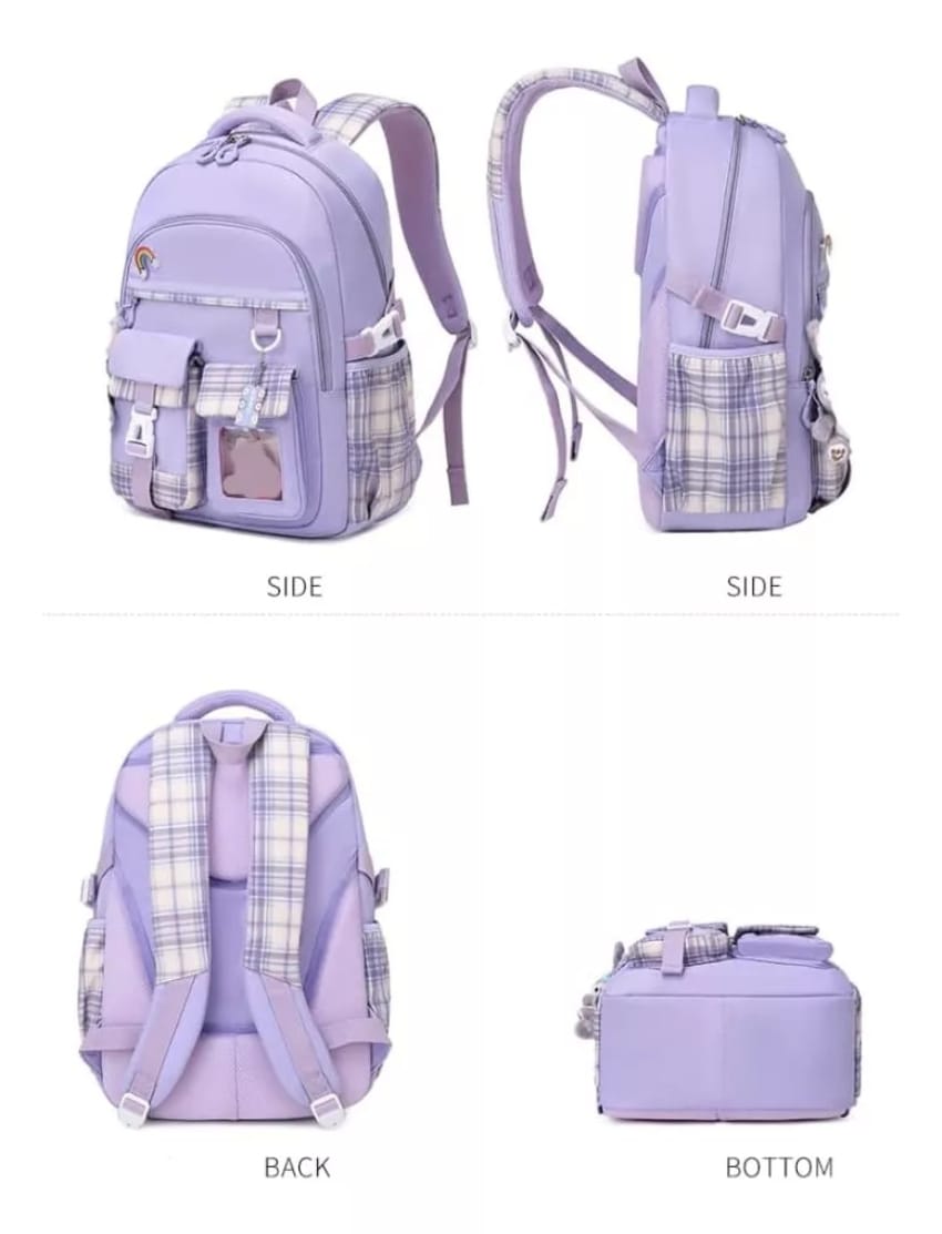 Mochila infantil para niña impermeable, cómoda y espaciosa, ideal para escuela, viajes y uso diario. Diseño elegante con múltiples bolsillos y espacio para laptop hasta 16”.